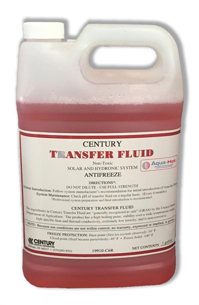Heating System Antifreeze; Century; Red; For Use In Boiler/ Solar Heating Systems/ Hydronic; Propylene Glycol Base (GRAS) Generally Recognized As Safe; Freeze Solid Protection to -100 Degrees Fahrenheit; Compatible With Systems Containing Aluminum Components; 1 Gallon Jug; Not To Be Diluted - Must Be used Full Strength; Single