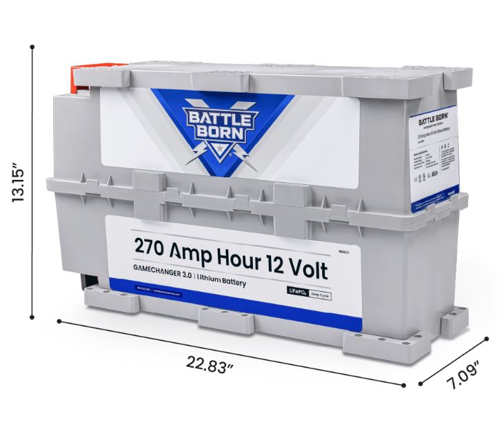 12V - 270 Ampere Hour Capacity - 22.83" Length x 7.09" Width x 13.15" Height