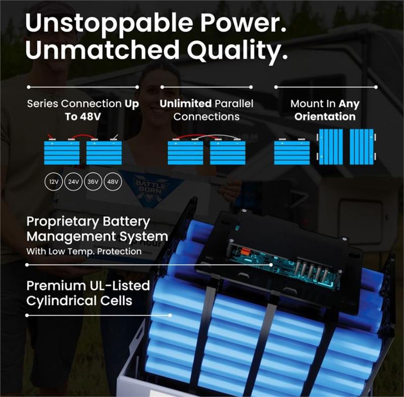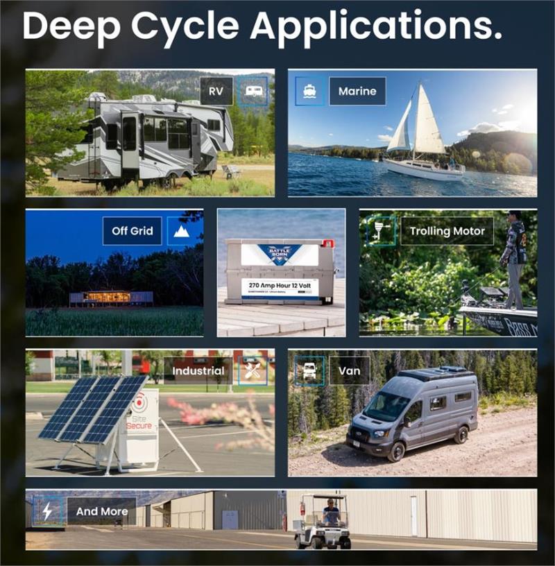 - Rugged Battery Design built for RV, camper van, boat, trolling motor, industrial, off-grid, and residential backup applications