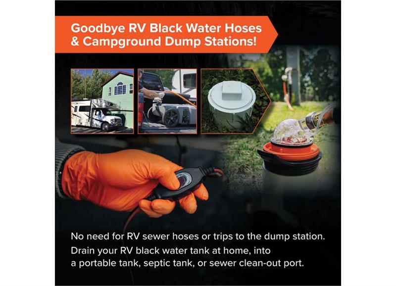 - The Most Advanced RV Sewage System: With VortexCore Technology, this RV waste pump kit pulverizes sewer waste into 1/8″ particles & pumps it through a 3/4″ ID standard garden hose for easy waste disposal over further distances or uphill.