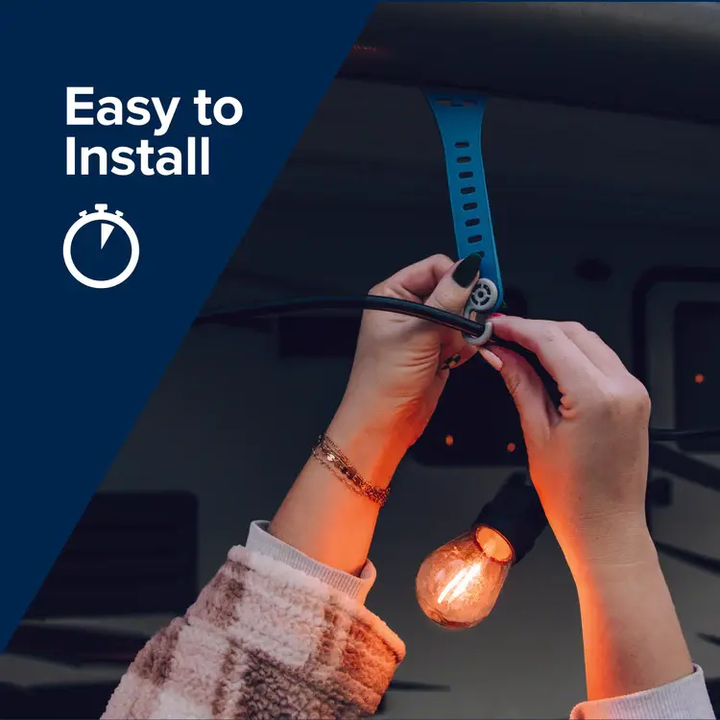 You can also loop them around pop-up canopy bars. With these trailer awning hangers, you can set up your string lights in no time, transforming your RV patio into a vibrant, festive space. Whether you're enjoying a relaxed evening or hosting a lively gathering, creating the perfect ambiance has never been simpler. Enhance your outdoor experience - get your Camco RV Quick-Set Party Light Hangers today and light up your RV camping adventures.