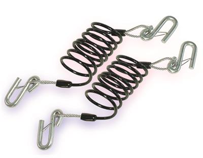 Trailer Safety Cable; 7000 Pound Rated; 86 Inch Extended Length; Vinyl Coated Steel; Coiled; With Hooks; Set Of 2Load Rating (LB): 7000 PoundLength (IN): 86 InchColor: BlackMaterial: SteelChain End Type: HookQuantity: Set Of 2