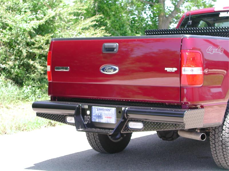 This rugged back bumper is made of 4" schedule 40 pipe and is V5 tested to 1000 pound tongue weight and 10,000 pound towing capacity or 500 pound tongue weight and 5000 pound towing capacity depending on the model. It is designed to accept a bolt 2" on receiver tube (Seen Below) although adding it to any Ranch Hand bumper will reduce the tongue weight to 500 lbs. and the towing capacity to 5000 lbs. Available with 8" or 10" drops. Optional back up/work lights available with 10" drop only. Do not exceed vehicle manufacturers recommended towing capacity. Note: Actual Product May Differ From Picture.