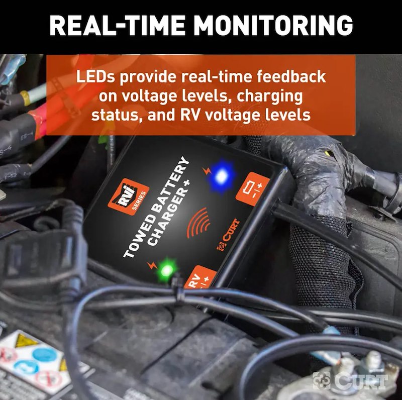 Many towed vehicles experience significant battery drain while being towed, which can leave you with a dead battery when you arrive at your destination. The CURT RVibrake Towed Battery Charger Plus is designed to prevent this unseen parasitic loss, ensuring your towed vehicle’s battery stays charged and ready to go. Equipped with multi-color LED indicators, this charger provides real-time feedback on your towed vehicle’s battery voltage, charging status, and even your RV’s voltage levels, so you always know your power situation at a glance. It’s compatible with all 12V batteries, including those in trailers, making it a versatile solution for various towing needs. For added safety, the charger features built-in connection protection, safeguarding your vehicle’s electrical system in case of incorrect installation.