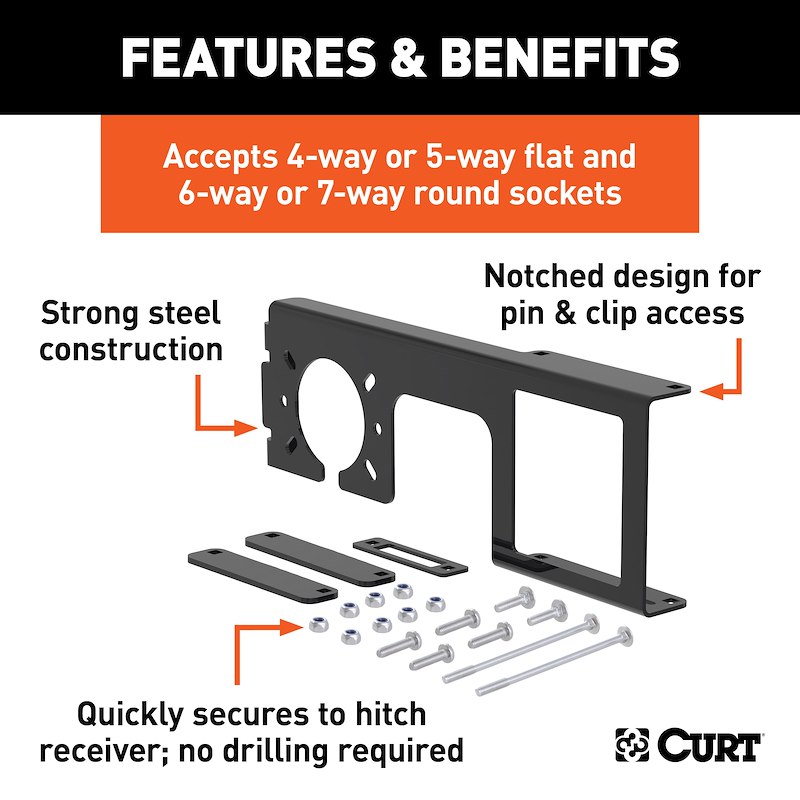 Allows 4-Way, 5-Way Flat, 6-Way or 7-Way Round Connector to be Mounted Near the Hitch Receiver