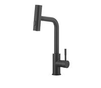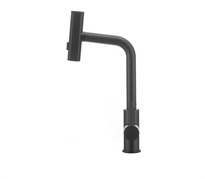 Faucet; Used For Kitchen; Single Piece Deck Mount; Rainfall Pull Out Spout; Lever Type/ 1 Handle; Matte Black/ Stainless Steel; Ceramic Disk; 1/2 Inch Fitting; With Optional Deck Plate