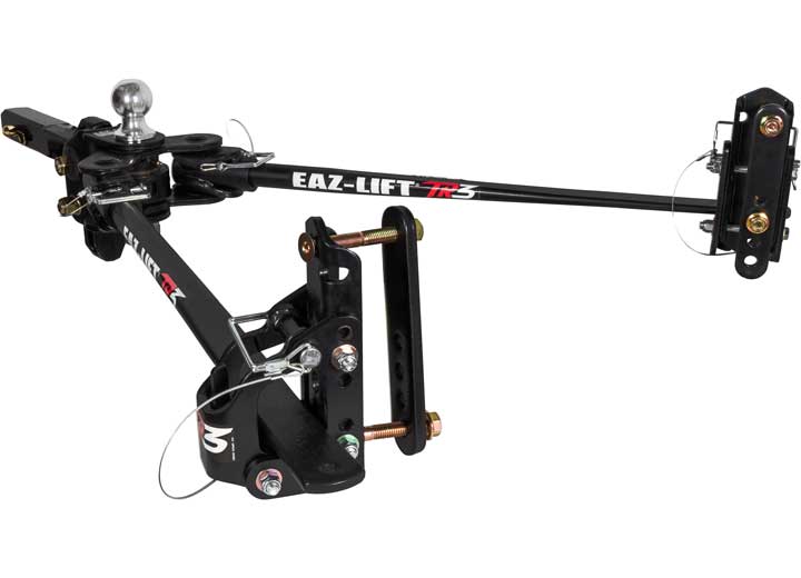 The Eaz-Lift TR3 600 lb. Kit is a weight distribution hitch with an 800 lb. maximum tongue weight rating that features adjustable sway control. By simply adjusting the clamp, you can decide how much sway control is exerted on the trailer. The TR3 will distribute the weight of your trailer across the axles of the tow vehicle and provide as much sway control as you choose. Or, turn the sway control completely off in dangerous or icy road conditions. Its streamlined design makes the hitch and the trailer move as one, while creating a sleek look. Includes a pre-installed 2 5/16-inch hitch ball. The Eaz-Lift TR3 is easy to install on top-mount or bottom-mount coupler style trailers.