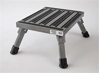Take your next step up with this rugged all aluminum safety step. Folds to just 3" thick with unique double-locking safety legs. Wide base with non-slip rubber leg tips prevents tipping. Supports up to 1,000 lbs.! Small is 7.25" high. Large is 8.5" high. "Touch and feel" box lets you see how the double-locking legs work. 1 year warranty. 1/box.