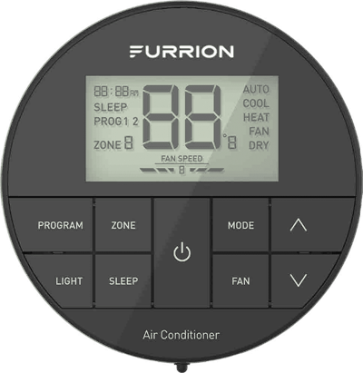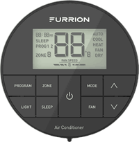 Wall Thermostat; Furrion Chill ™ HE; Use With Furrion Chill ™ HE Air Conditioners; Multi Zone; Heat/ Cool; Programmable; LED Digital Readout; 12 Volt DC; With High/ Medium/ Low/ Auto Fan Speed Control; With Fan On/ Auto Mode; Black; With Memory Function/ Auto Reset/ Sleep Function/ LED Mood Lighting; Also Use New Number FACW12ESZA2-BL-AM