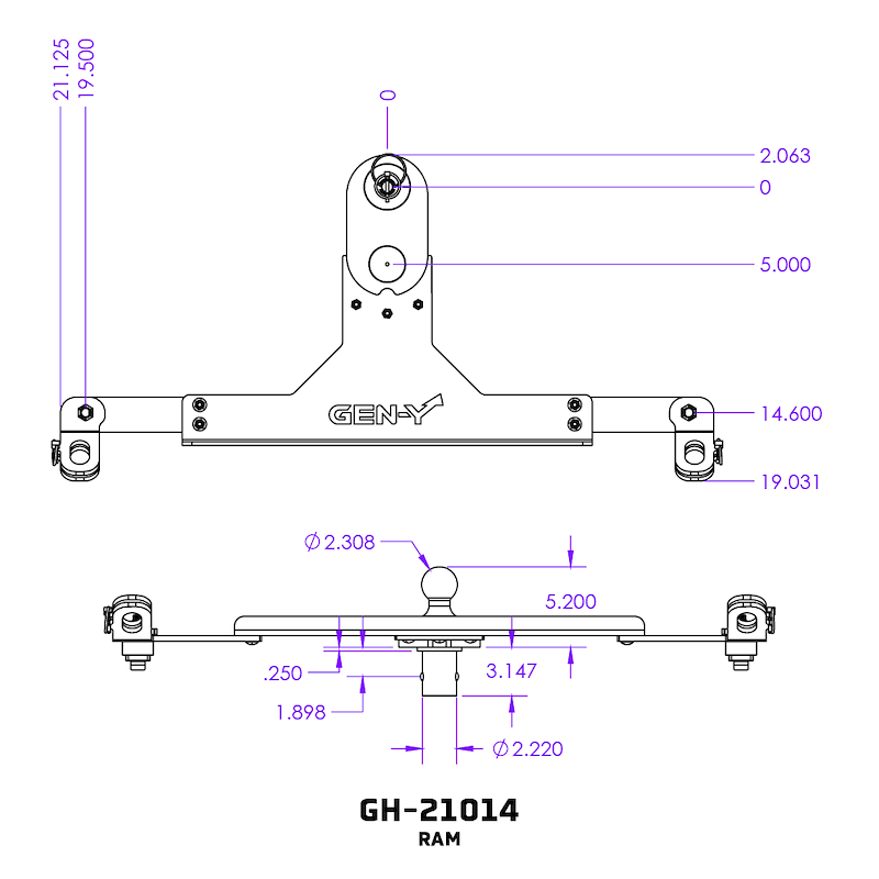 GEN-Y GH-21014 Gen 2 Goosepuck With 5" Offset For Ram OEM Pucks - 25K