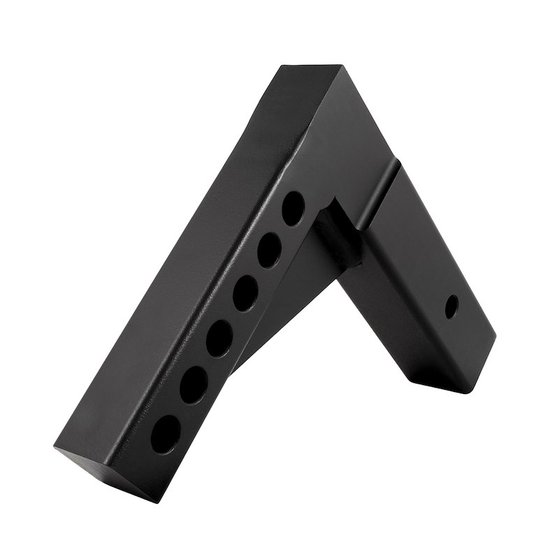 Receiver Size: 2-1/2 InchShank Length: 10 InchShank Rise: 7-1/2 InchShank Drop: 10 InchNumber Mounting Holes: 6Finish: Powder CoatedColor: BlackMaterial: Steel