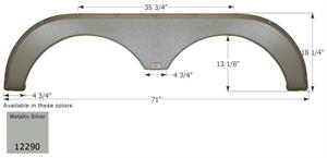 Fender Skirt; Tandem Axle; Fits Thor Brands Including Tahoe; 71 Inch Length x 18-1/4 Inch Height; Metallic Silver; ABS Plastic; Tandem; Single; Use Measurements To Determine Proper Fitment Before Ordering