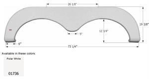 Fender Skirt; Tandem Axle; Fits Various Starcraft Brands Including Aruba; 73-1/4 Inch Length x 19-3/8 Inch Height; Polar White; ABS Plastic; Tandem; Single; Use Measurements To Determine Proper Fitment Before Ordering