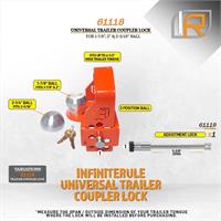 **WARNING:** This product is designed as a universal fit for most standard trailer couplers. It is not intended for receiver hitch applications or other locking points. Please verify dimensions and compatibility with your specific trailer coupler before purchase to ensure proper fit and security. **WHAT'S INCLUDED** - Single Pack (1) Trailer Coupler Lock For 1-7/8", 2", & 2-5/16" Ball. Best Trailer Accessories For Travel Trailer Essentials. **UNIVERSAL FIT** - Designed to work with most standard trailer couplers, including Demco, Curt, Bulldog, RAM, and other thumb-latch, trigger-latch, yoke-latch, and sleeve-lock couplers. Compatible with both cast and stamped models. Verify dimensions for proper fit before purchase. **MODELS** - Designed for use with a variety of trailer couplers, including Demco, Curt, Bulldog, RAM, Fulton, Buyers Products, B&W, Reese, Pro Series, and more. Compatible with thumb-latch, trigger-latch, yoke-latch, and sleeve-lock couplers. Works with A-frame, straight-tongue, adjustable, weld-on, channel-mount, tube-mount, flat-mount, bolt-on, and gooseneck couplers. Verify dimensions before purchase to ensure proper fit. **ANTI THEFT** - Machined Pins And pins Rigorously Tested By Trusted 3rd Party Solutions. Featuring a patented robust threaded Pin system and head over pin design, producing the best hitch security. **DURABLE** - No Rust Trailer Hitch Pin. Resists Corrosion With Premium Materials. Tight Fit hitch Pin With Weatherproof Rubber Cap And O-ring To Protect From Rain Water, Grime, Dirt, And Debris. **100% MADE IN THE USA** - Protect Your Hitch With InfiniteRule Security Proudly Manufactured, Shipped, and Serviced In The USA! We Never Outsource Our Pining Pin Production - Real USA Made Products.