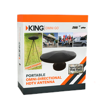 KING OmniGo – the latest innovative solution from KING, the leader in advancing OTA technology. This omnidirectional antenna is uniquely suited for picking up signals from all directions, without having to move or adjust the device. The amplified signal maximizes signal strength to provide the best TV reception available in your area. There is no need to rotate the antenna when finding TV signal in your new location – simply sit back and let the antenna do the work. Your KING OmniGo will be ready to go whenever you are. Powerful and compact, the KING OmniGo is designed for mobility. There is no installation required – no drilling, no holes, and no labor. Manufactured with durable automotive-grade plastic, the antenna is waterproof, strong, UV-protected and resistant to rust. It’s designed to withstand your outdoor adventures in all climates. With access to free over-the-air programming you’ll never have to miss your favorite shows, local news or live sporting events again. No more cable bills or satellite contracts. You’ll be watching free HDTV wherever the road leads you!