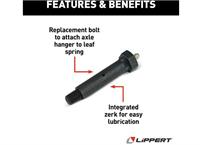 Compatibility: Lippert AxlesLength (IN): 3.24 InchDiameter (IN): 9/16 InchMaterial: SteelQuantity: Single