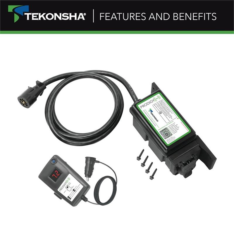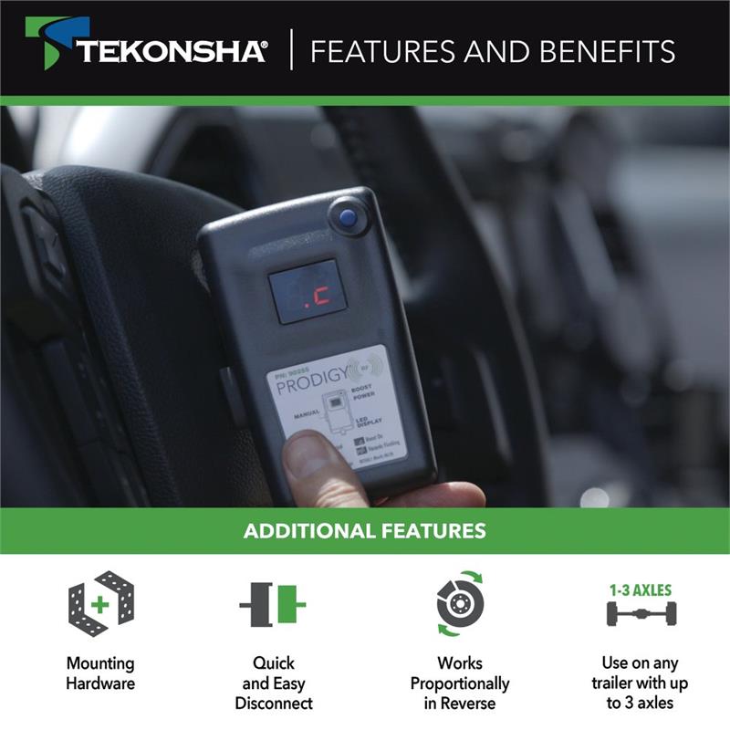 - PROPORTIONAL ELECTRIC BRAKE CONTROLLER: Provides automatic braking based on the intensity and rate at which you apply your tow vehicle’s brakes, thanks to an internal inertia sensor. This makes the Tekonsha Prodigy RF brake controller ideal in any braking situation.