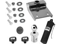 Easy Under-Bed bolt-in installation. Rated for 25,000 lbs. gross weight capacity. Passes SAE J2638, the toughest industry standard. Pop-In Ball. -Lever inside ball head activates ball bearing locking system. Lift and turn lever to unlock and remove ball. Two safety chain holders attach directly to rail system. Fifth wheel ready uses outer four holes to mount a fifth wheel hitch. Hole cover keeps Pop-In Ball sleeve free of debris. Storage bag included. Patented and Patents Pending.