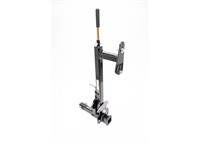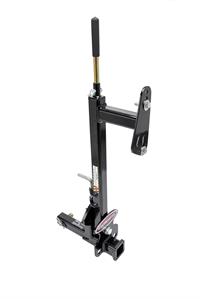 This Spare Tire Carrier is designed for traditional automotive wheels found on most vans, pickups and SUVs. It features a patented design that allows the carrier to pivot down to the ground — just roll the wheel up and bolt it to the carrier, extend the tire carrier's handle, and use it to lever the assembly upward. Once vertical, it will automatically latch into position.