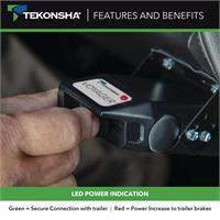 - EASY-TO-READ INDICATOR: Color LED indicator shows settings, real-time diagnostics, and alerts. Red light means power increase to trailer brakes. Green light means secure connection with trailer.