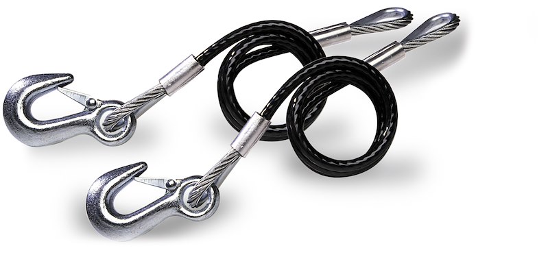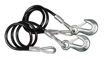 Trailer Safety Cable; 7000 Pound Rated; 36 Inch Length; Galvanized Aircraft Steel/ Black Vinyl Jacketed; With Safety Latch Hook; Set Of 2
